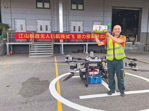 江山邮政不断创新服务模式,8月27日下午,在塘源口乡彬峰农业发展有限公司的猕猴桃种植基地启动无人机运输航线试飞,一架搭载10公斤猕猴桃的无人机从山间果园起飞,仅用9分钟便顺利完成了至江山共配中心的20公里直线跨越。从邮车速运到无人机直达,江山猕猴桃沿暖心产销链路走进千万家庭。江山邮政不仅为果实筑牢“保鲜销路”,更以多元助农举措让农户致富路越走越宽。