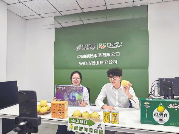 10月9日,安徽省砀山县邮政分公司紧扣砀山酥梨特色农业产业,开展“乡村振兴 邮我助力”世界邮政日主题直播活动。在直播间,主播重点展示了邮政为酥梨产业量身打造的源头品控、专业包装、冷链运输等一体化服务方案,彰显邮政有效助力地方经济发展、服务乡村振兴的新作为。 □房洪玲 摄影报道