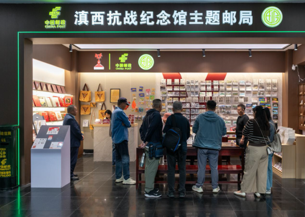 滇西抗战纪念馆主题邮局内陈列着以中国远征军、滇西抗战为主题的邮品与文创产品。“这不仅是一张明信片,更是一段历史的传递。”来自缅甸的学生张云文感叹道。这家邮局以它独特的方式,将悲壮的家国记忆凝聚于邮票与一枚枚邮戳之中,让历史变得可触摸、可感知、可流传。