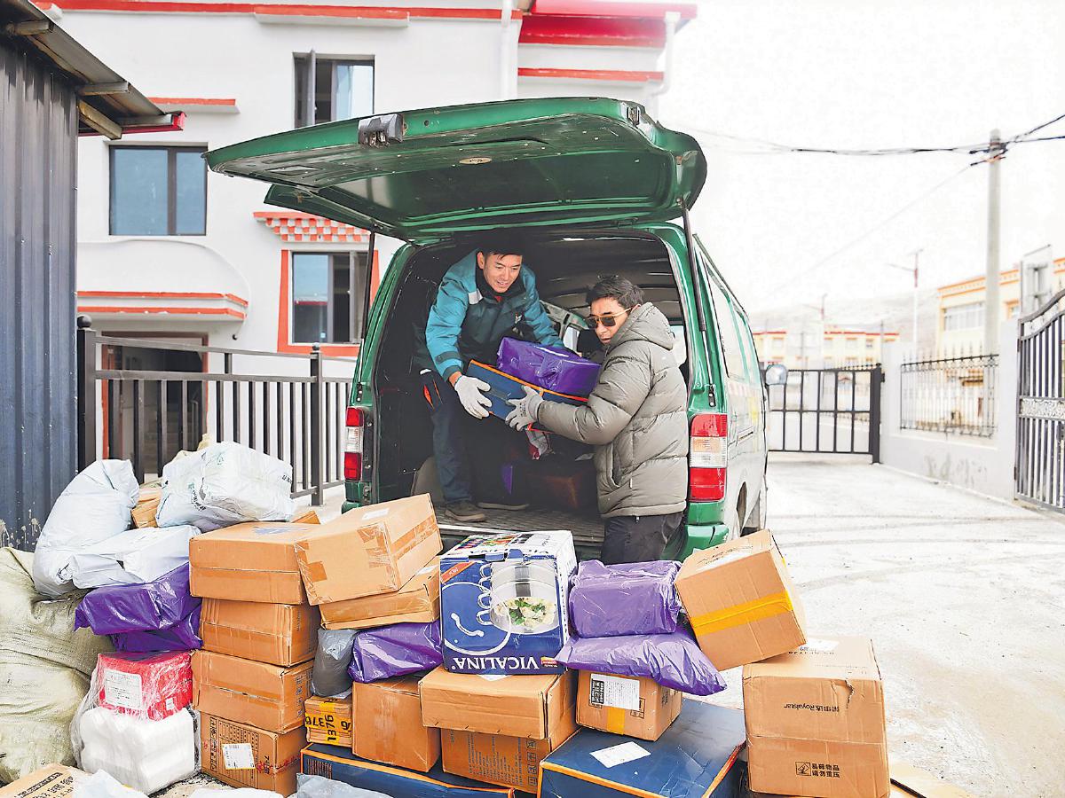 行至牙弄村,哈弄夺机刚把车停稳,早已等候在路边的藏族阿妈俄尖卓玛就迎了上来。“夺机,我的包裹到了吗?”阿妈的眼里满是期待。“到啦!这是您女儿买的空气炸锅,还有这箱是新衣裳。”哈弄夺机利索地跳下车,将几个沉甸甸的包裹搬进阿妈家。屋内炉火正旺,桌上的酥油茶热腾腾地泛着香气。卓玛阿妈抚手里拆着包裹、笑得合不拢嘴:“以前买年货得去县城背回来,现在好了,手机上点一点,邮政把包裹送到家门口,这年过得真是越来越方便,越来越有滋味!”