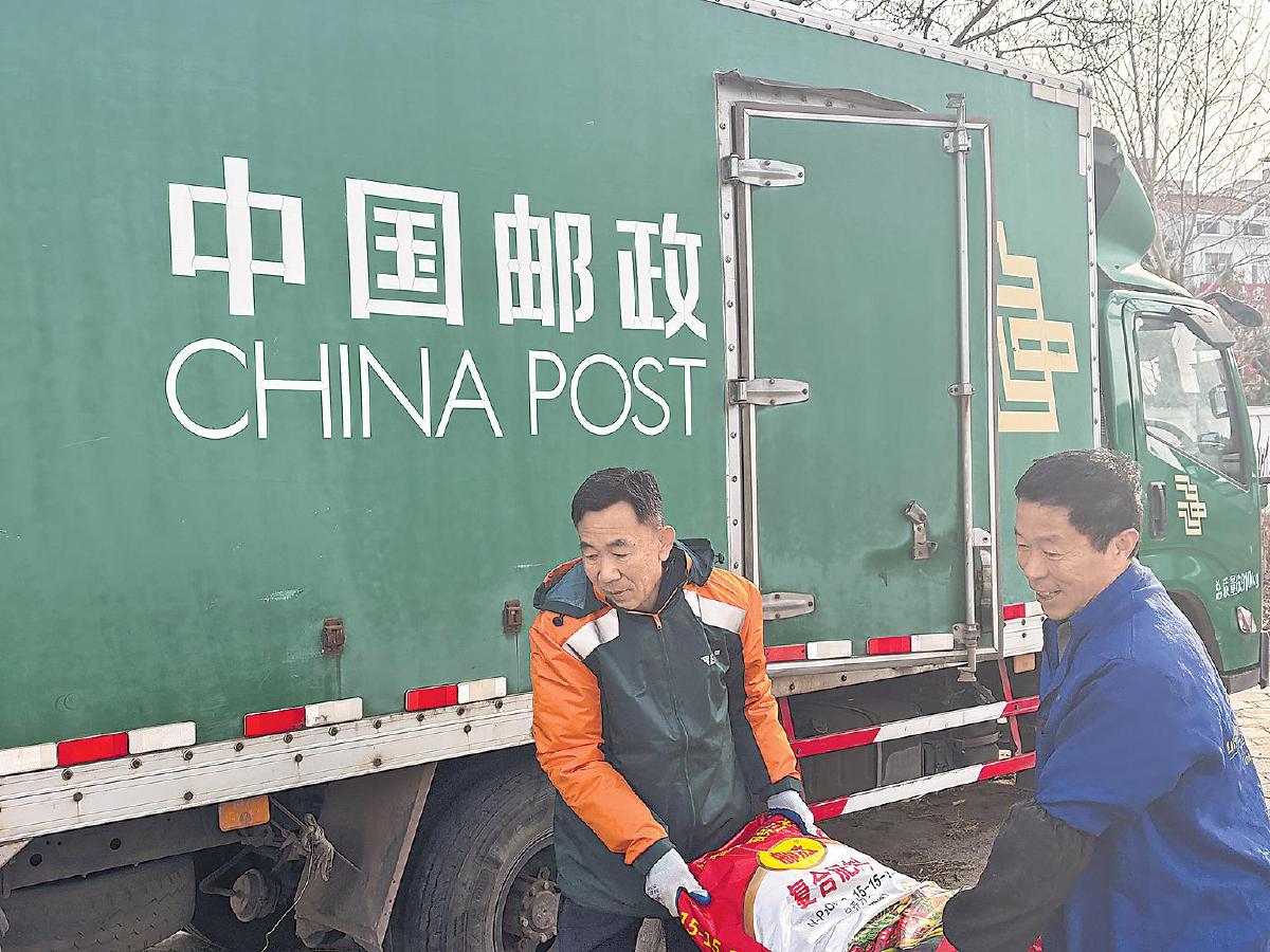 潍坊邮政揽投员送农资上门,让农户少跑腿。